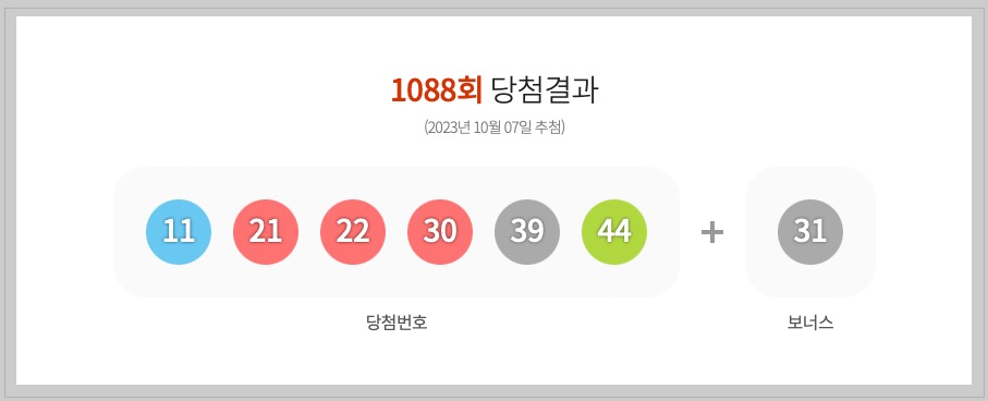 1. 로또 6/45 1088회 당첨 번호(23.10.07)