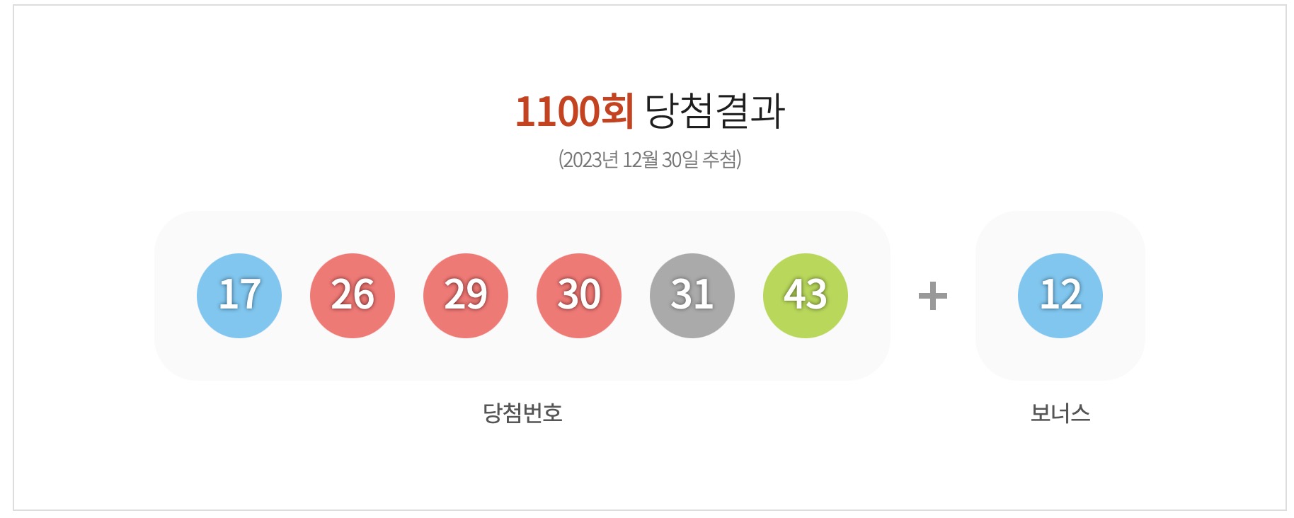 1. 로또 6/45 1100회 당첨 번호(23.12.30)