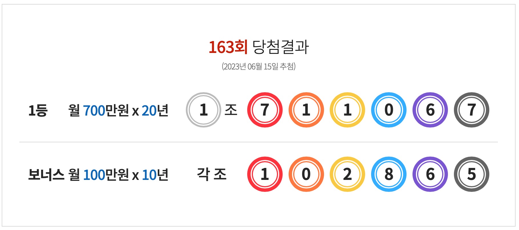 목요일 밤의 163번째 행운! 연금복권 163회 당첨결과가 나왔습니다.