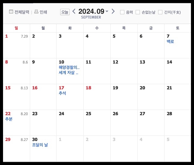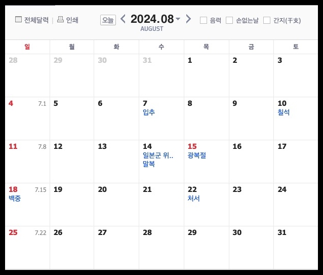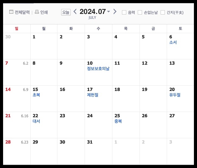 24년 3분기 공휴일 일정 (7월~9월)