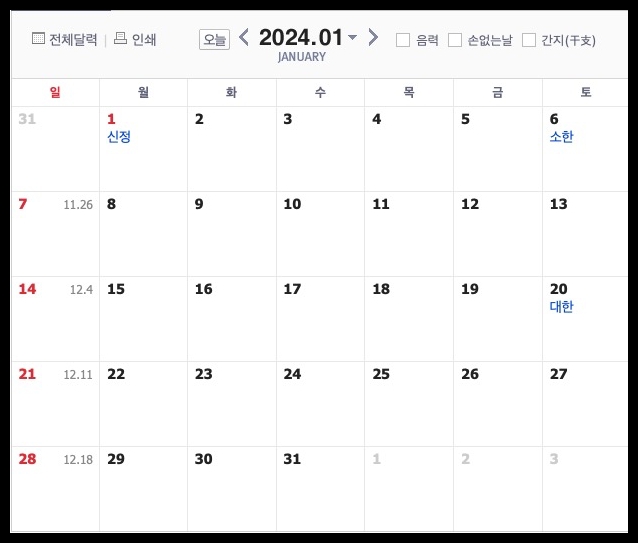 2024년(갑진년) 공휴일 일정 요약