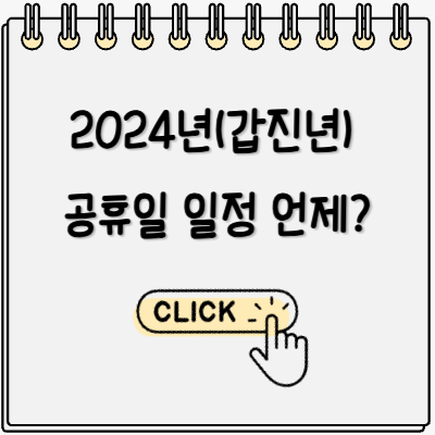 2024년에는 푸른 용, 청룡의 해인 '갑진년' 입니다. 한해가 시작되면 가장 중요할 부분은 언제 공휴일이고 언제 쉬느냐가 한해 앞두며 가장 관심있어하실 부분이라고 생각됩니다. 하늘로 솟는 용의 기운을 담아 갑진년 한해를 잘보낼 수 있도록 미리 일정을 확인해보시고 계획을 세워보시기 바랍니다.
